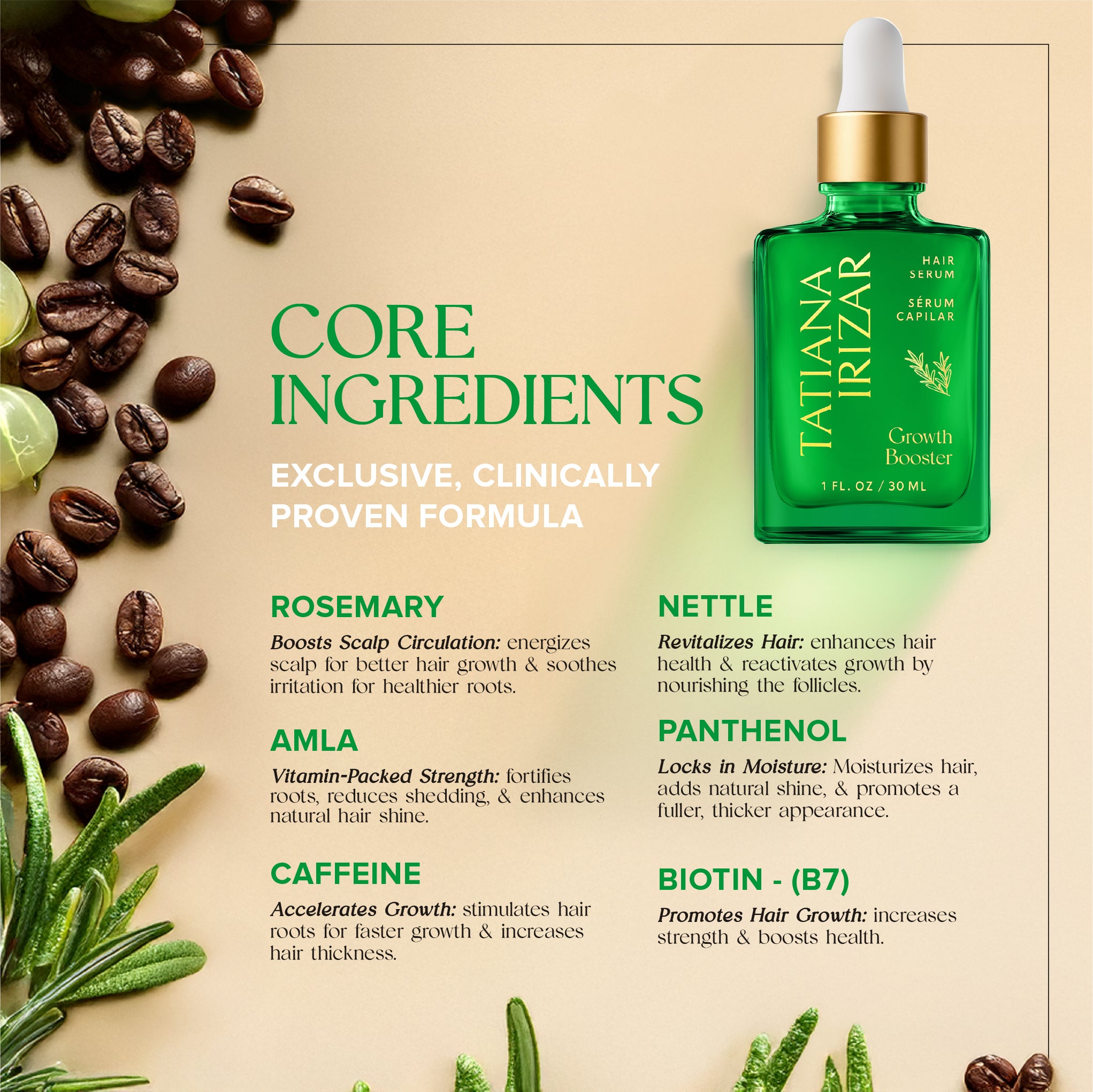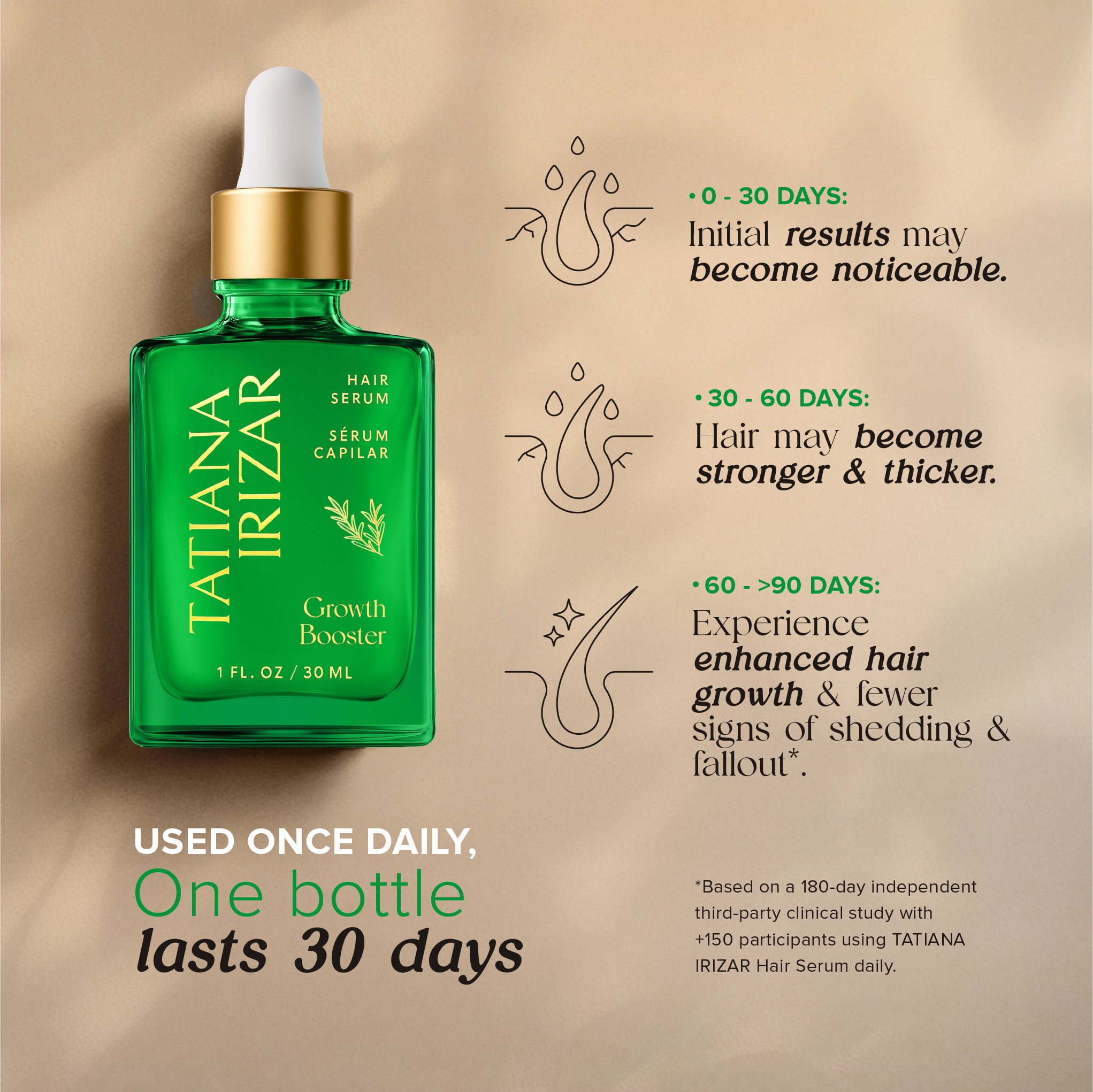 Tired of hair that lacks life, shine, and thickness? Discover the exclusive hair serum that embodies Tatiana Irizar's personal journey to achieving luxuriant, voluminous, and incredibly healthy hair.